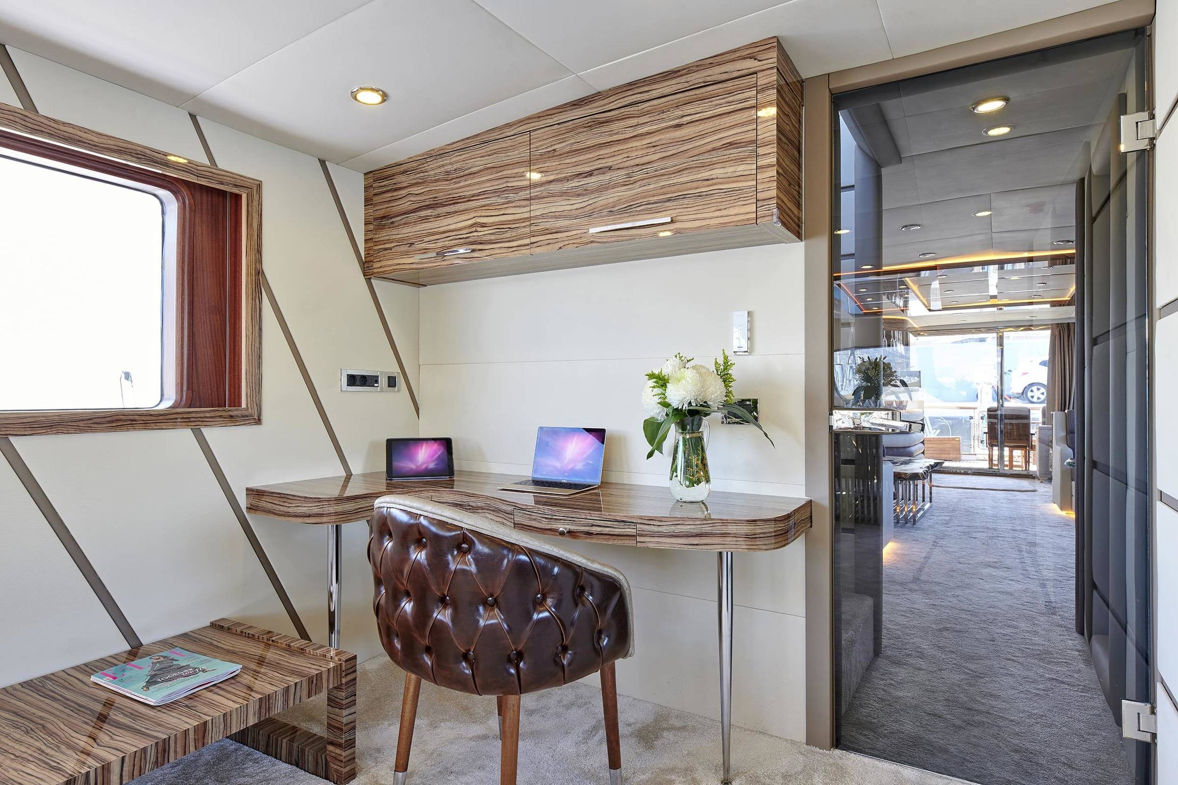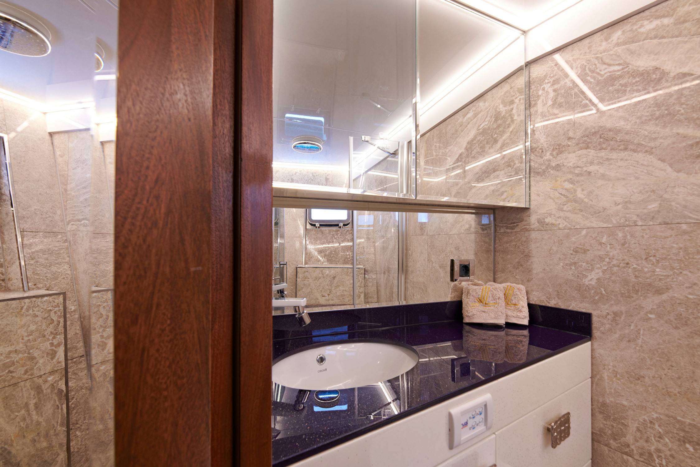 6 TV´s, 2x Generator, Water maker, Onboard Wi-Fi Internet access in every cabin, Full AC, Wifi TV with Bose Soundbar System, Business Corner with printer (air print), Ipad, Macbook, Nespresso Machine, Full equipped Bar, 2 x Icemaker, USB Charging in all cabins and Decks, Hair dryer in all cabins. Powered by two economic 6 cylinder diesel engines and auxiliaries include two generators, air-conditioning and Bow / Stern thrusters. Beauty services, Dance classes, show programs upon request with extra charge.