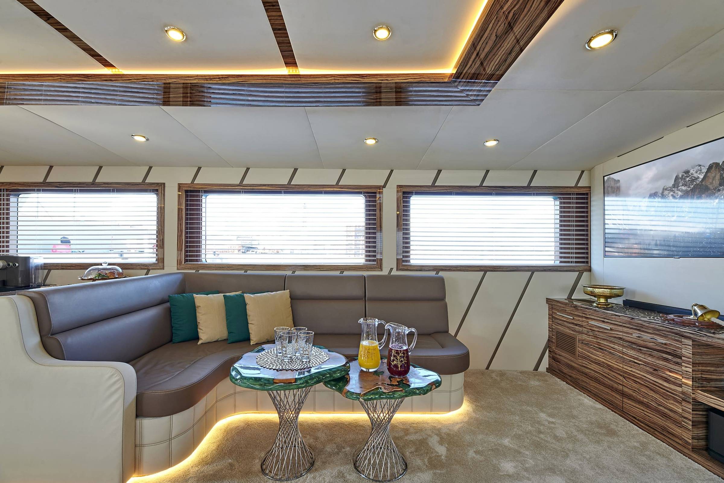 WIDE LIBERTY is classified as a superyacht. The key part of the yacht, the aft deck, is right next to the meticulously composed main saloon. The main saloon is a gathering space with an abundance of seating areas and serves as a location of entertainment.